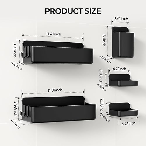 Nieifi Adhesive Wall Shelf, Shower Sheves 5 Pack with Soap Holder, Shower Organizer for Bathroom Organization, Clear(Black)