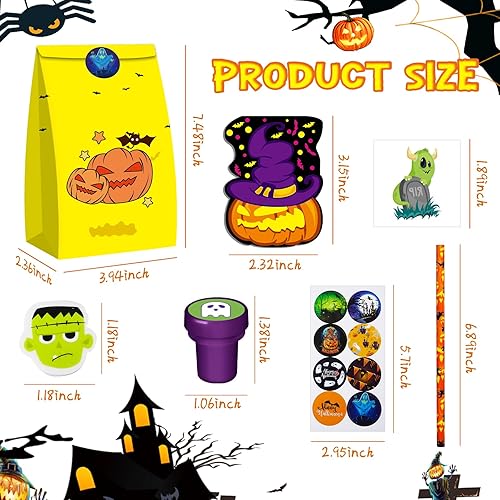 OCHIDO Halloween Party Favors for Kids-168pcs Stationery Gift Kit,Halloween Goodie Bags Fillers Bulk,Trick Or Treat , Halloween Bag,Pencil, Eraser, Notepad, Stamper, Sticker and Temporary Tattoos