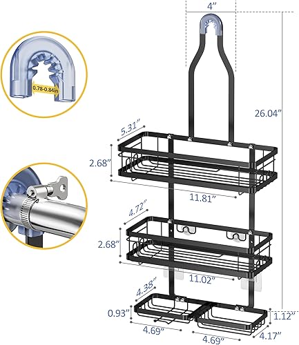 Comment on "OMAIRA Shower Caddy Hanging with Soap Scrub Holder, Stainless Steel Adjustable No Drilling Non-Slip Large Capacity Sturdy Over Shower Head Shower Organizer Inside Shelves Bathroom Storage Rack, Black(Black)"