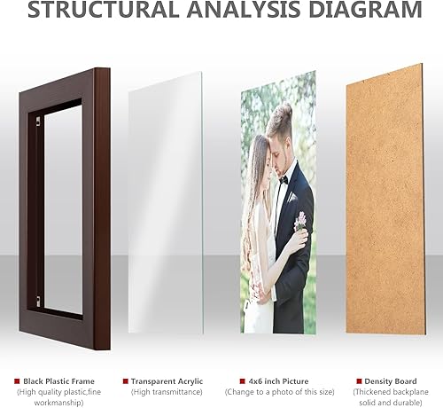 HIGH PERMEABLE PERXIGLASS: The photo picture frame is made of perspex glass, protected against breakage and has high transparency. This does not affect your viewing and stops your photos from dust and moisture. (There is a piece of adhesive paper on both sides of the plexiglass that should be torn off before putting it into the photo frame)