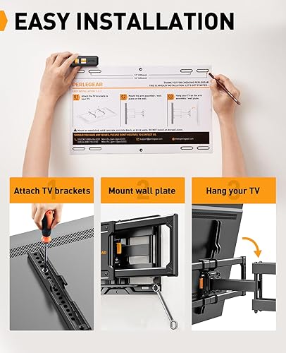 Comment on "Perlegear Full Motion TV Wall Mount for Most 42–84 inch Flat Curved TVs up to 132 lbs, 12″/16″ Wood Studs, Bracket with Articulating Arms, Swivel, Tool-Free Tilt, Max VESA 600x400mm PGLF12"