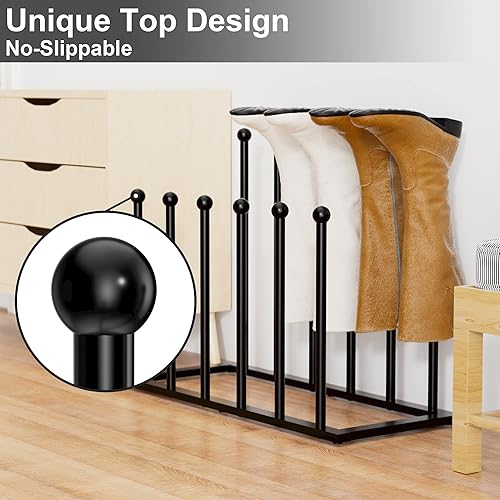 pickpiff Free Standing Shoe Racks - Black Metal Boot Rack Organizer Tall Boots for Dorm Room, Closet, Entryway, Bedroom, Patio Outdoor, Hallway, Black, Shoe Storage Fit for 8 Pairs(Black,Medium for 6 Pairs)