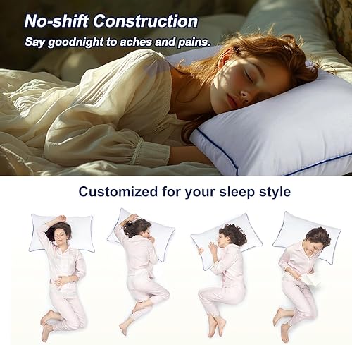 Non-shifting design: The inside of the pillows for bed is made with strict down-fixing technology, the alternative down filling is evenly distributed and does not easily run out of down, perfectly shaped and non-shifting