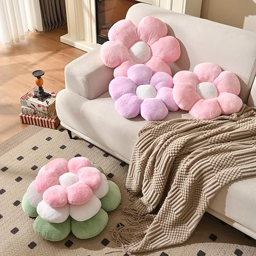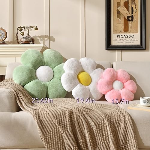 Flower Pillow Cushion size: 15.7in(40CM),19.6in (50CM), 23.6in (60CM); suitable for various scenes have four colors to choose from.Pink green purple white