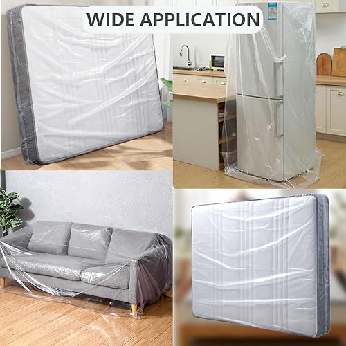PREMIUM MATERIAL - our mattress bag is made of 1.5-mil thickened polyethylene, tear-resistant and odorless.high transparency, high toughness,Protect your mattress during relocation with our tear-resistant plastic mattress bags for moving.