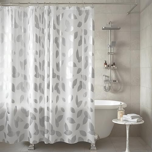 ATTRACTIVE PATTERN DESIGN-TRIMENGO Shower Curtain Liner is designed with silver leaf pattern print which looks very classy and brings in a breath of elegance for your bathroom.