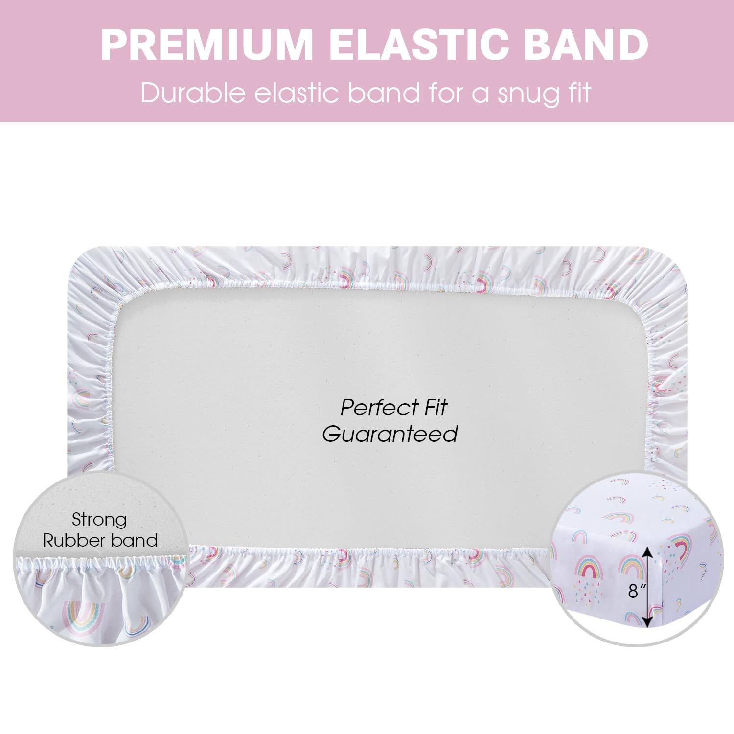 Perfectly Fit: Measuring 52 by 28 inch,our crib sheets fit most standard crib mattress and toddler bed mattresses.Snug fit up to 8 inch thick mattress and elastic all around, perfect tight stretch for sleep safety.