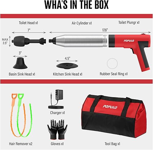 Trusted Quality, Peace of Mind: Customer satisfaction is our top priority. Populo is a trusted brand in the field of drain cleaners, and we have full confidence in the quality of our product. That's why we offer a generous two-year assurance, providing you with peace of mind. Experience the power and convenience of the Populo Air Plunger and never worry about clogged drains again. Get yours today and enjoy a cleaner, healthier home!