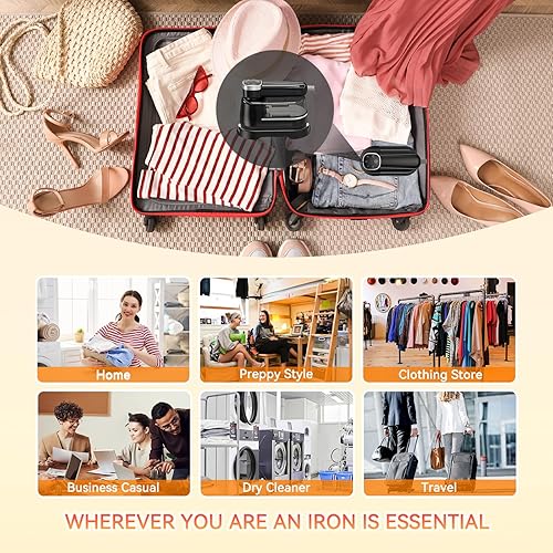【Iron Perfect for Travel】 With dimensions of 2.8 x 4.3 x 9.3 inches, our handheld steam iron is enough to fit into any suitcase, carry-on luggage, or travel bag. It can be rotated at three angles (0°-90°-180°), making it perfect for business trips and vacations, allowing you to enjoy fast and efficient ironing wherever you go.