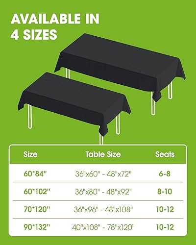 VARIOUS CHOICE: The Pureegg tablecloth for rectangular tables is available in a 60''×84'' size, suitable for 5ft tables. What's more, this tablecloth comes in various colors to match different decoration styles. You can freely choose the black tablecloth or other colors according to your preference.