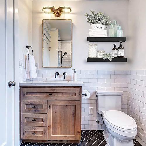 QEEIG Bathroom Floating Shelves for Wall - 15.7" Wall Mounted Shelf Over Toilet Farmhouse Home Decor Display Bookshelf Small 15.7 x 6.7 inch Set of 2, Rustic Brown (008-40BN)(C. Black,15.7")