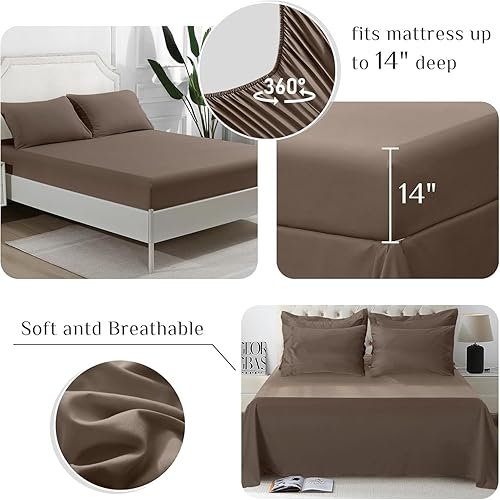 JOLLYVOGUE Queen Comforter Set, Ultra-Soft Bed in a Bag Queen Size 7 Pieces, Oeko-TEX Certified Bedding Set with Down Alternative Comforter, Sheets, Pillowcases & Shams, Black(Brown,CAL KING(104"*96"))