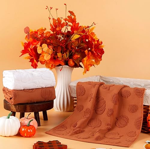 【Handmade Design】our towels are dark color, bright and lovely;the towel is printed with Pumpkin pattern, towel comes with a bow,they are very delicate and can enhance the thanksgiving atmosphere.