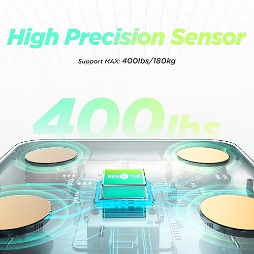 High Precision & Accuracy: The Runstar scale for body weight upgrades sensitive electrodes that can auto-identify and match user profiles, only takes 20 seconds to measure your 22 body detail indicators. Upgraded high-precision sensor performance has been tested over 100,000 times—ensuring high accuracy weighting to 0.1lb/ 0.05kg, supporting up to 400lb/ 180kg