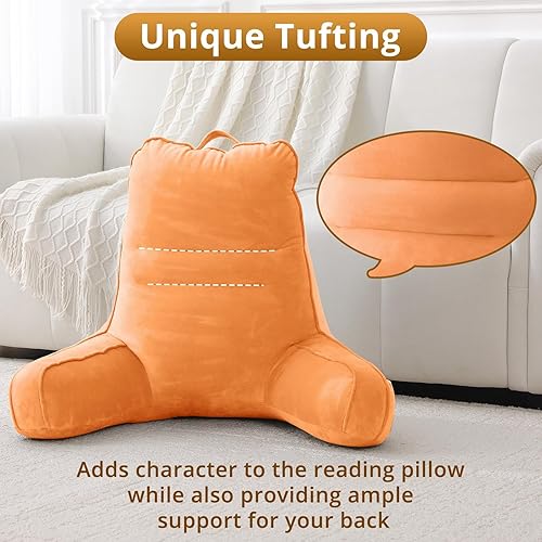 Sasttie Reading Pillow for Bed - 23 Inch, Back Pillow for Bed Sitting Up, Back-Rest Support Cushion with Side Pockets and Arms, Dorm Essentials, Oeko-Tex Certified, Dark Grey(Orange,23-Inch)