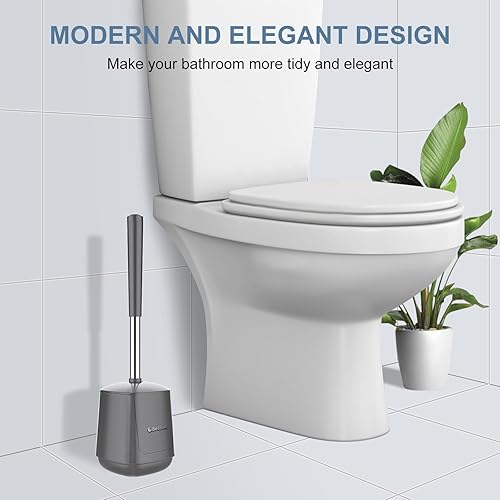 SetSail Toilet Brush and Holder, Self Closing Lid Toilet Bowl Brushes Holder and Extra Long Handle Ventilated Toilet Brush Set for Bathroom Cleaning, Nylon Bristles, White & Grey(Gray,1 pack)