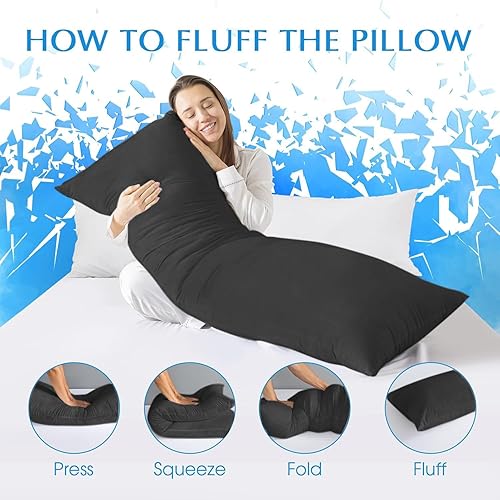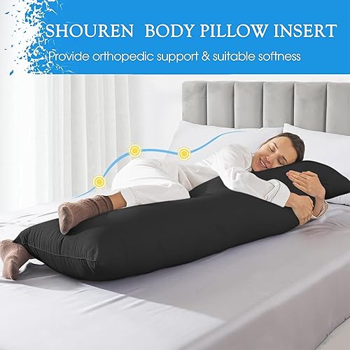 SHOUREN Cotton Body Pillow Insert - Cooling Breathable Full Body Pillow for Side Sleeper - Soft Long Bed Pillow for Adults - 20 x 54 inch-White(Black,Body pillow insert)