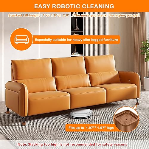 【Versatile 1 Inch Furniture Riser】 Table risers not only make it easier for robotic vacuum to clean your floors and provide you with more under-bed storage space, but they also help with better sleep or for those who have back pain. Couch risers are perfect for raising the height of low furniture to assist in the process of moving from sitting to standing.