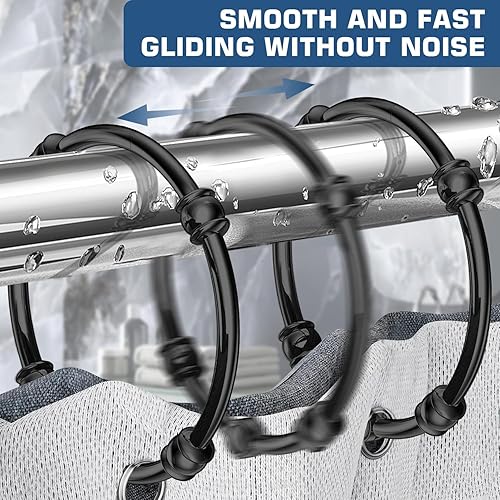 Shower Curtain Rings, 12 Pack Shower Hooks for Shower Curtain, Rust Proof Metal Decorative Shower Rings for Bathroom Shower Rod, Smooth Sliding Anti-Drop Shower Rings for Curtain, Black(Black)