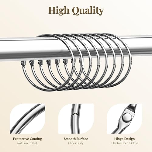 Smooth sliding & less tangled: The smooth surface of these black curtain rings ensures they glide easily on the shower rod. The simple design of metal shower curtain rings prevents them from getting stuck together as they slide.