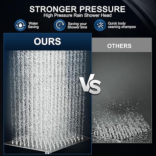 10 Inch Rainfall Shower Head: All-Chrome 304# stainless steel highest rust resistance, make the shower have a long service life, reliable leak-proof connection, Ultra-thin design and advanced air booster technology make water pressure higher, and the 10inch design can cover your whole body to a greater extent, giving you a luxurious and pleasant shower experience