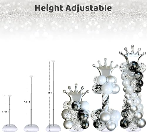 SINBEE Balloon Arch Stand, Balloon Arch Kit of 2, 7 Feet Height Adjustable Metal Balloon Column Stand for Party Decorations Wedding Birthday, Graduation Party Decoration, Baby Shower, Silver(Silver 4pcs)