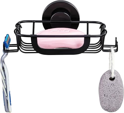 KEEP SOAP DRY & MULTI-HOOKS: Our self-draining soap holder features a hollowed-out design that allows for faster drainage, accelerates soap drying, and prevents soap from soaking in water, thus preventing it from melting. In addition, it comes with four removable hooks that can be used to hang razors, shower brushes, towels and other supplies, making it a versatile storage solution
