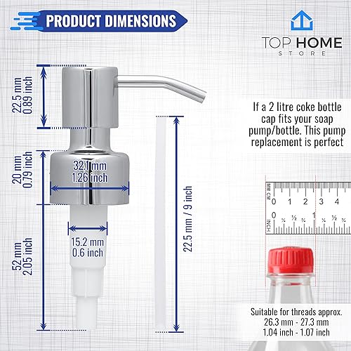 STANDARD SIZE - Fits most liquid pumps. Test your lotion or soap bottle using a cap from a 2 litre (67.6 oz) coke bottle. If it fits, this pump will work perfectly.