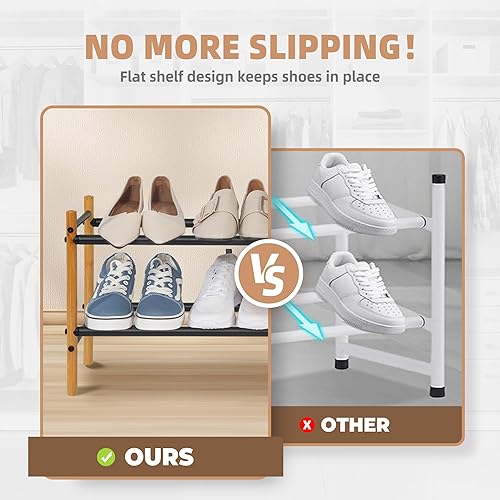 Comment on "STORAGE MANIAC Expandable Shoe Rack, 8 Pairs Stackable Small Shoe Rack, Metal Adjustable Shoes Organizer for Closet, Entryway, Hallway, Garage, Front Door, Shoes Shelves, Black 2 Tier(Bamboo/Black,2 Tier)"