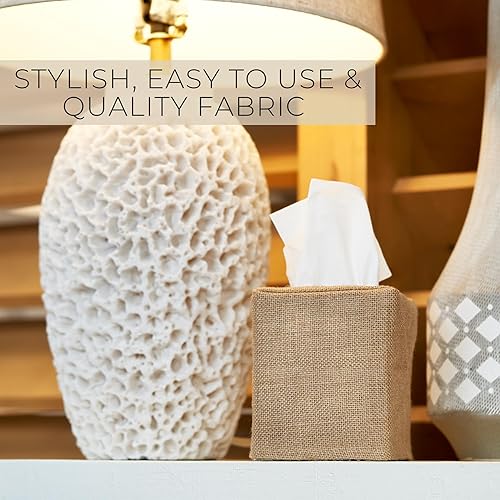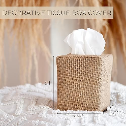 Stylish Tissue Box Cover - This Burlap Holder Instantly Covers Your Square Tissue Boxes - The Perfect Fall Decorative Cube Cover for Your Bathroom and Home
