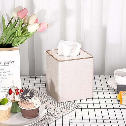 High Quality - The attractive tissue box cover is made of high quality MDF(inside) + Linen (outside) materials; It's sturdy to keep the tissue box from being crushed;The stitching is not only even and neat, but also contrasts nicely with the beige linen material.
