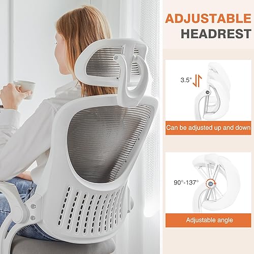 Sweetcrispy Office Computer Desk Chair, Ergonomic High-Back Mesh Rolling Work Chairs with Wheels and Adjustable Headrests, Comfortable Lumbar Support, Comfy Flip-up Arms for Home,Bedroom,Study, Black(Flip-up Armrest,Grey)