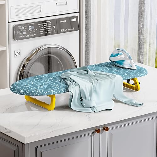 • APEXCHASER Small Ironing Board,Tabletop Iron Board with Removable Cotton Cover, Dorms,Laundry Rooms,Travel Yellow & Blue