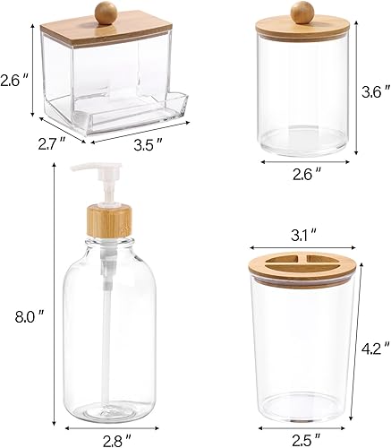 Comment on "Tbestmax Bamboo Bathroom Accessories Set 4 Pcs - Clear Toothbrush Holder Plastic Soap Dispenser and 2 Qtip Holder Cotton Swab/Pad/Ball Container Jar(4 Pack - Style1)"