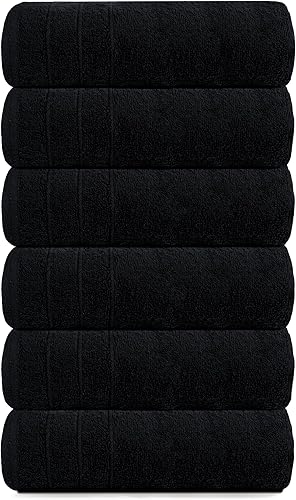 Tens Towels Pack of 6 Hand Towels, 100% Cotton, Lighter Weight, Quick to Dry, 16 x 28 Inches, Super Soft & Absorbent, Perfect for Bathroom & Kitchen, Dark Grey(Black)
