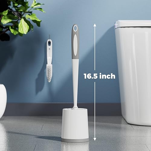 【Ergonomic Comfortable Handle】The toilet brush set handle is designed for a comfortable grip. The silicone material on the long toilet bowl brushes handle provides you a great control to clean the toilet easily.