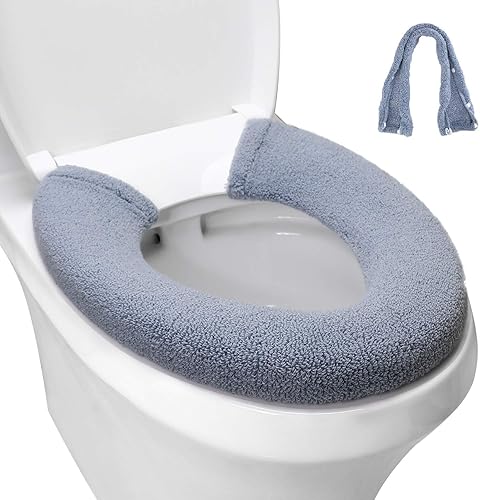 Toilet Seat Cover,Bathroom Soft Thicker Warmer with Snaps Fixed Stretchable Washable Fiber Cloth Toilet Seat Covers Pads Easy Installation& Cleaning (grey)(Pink)