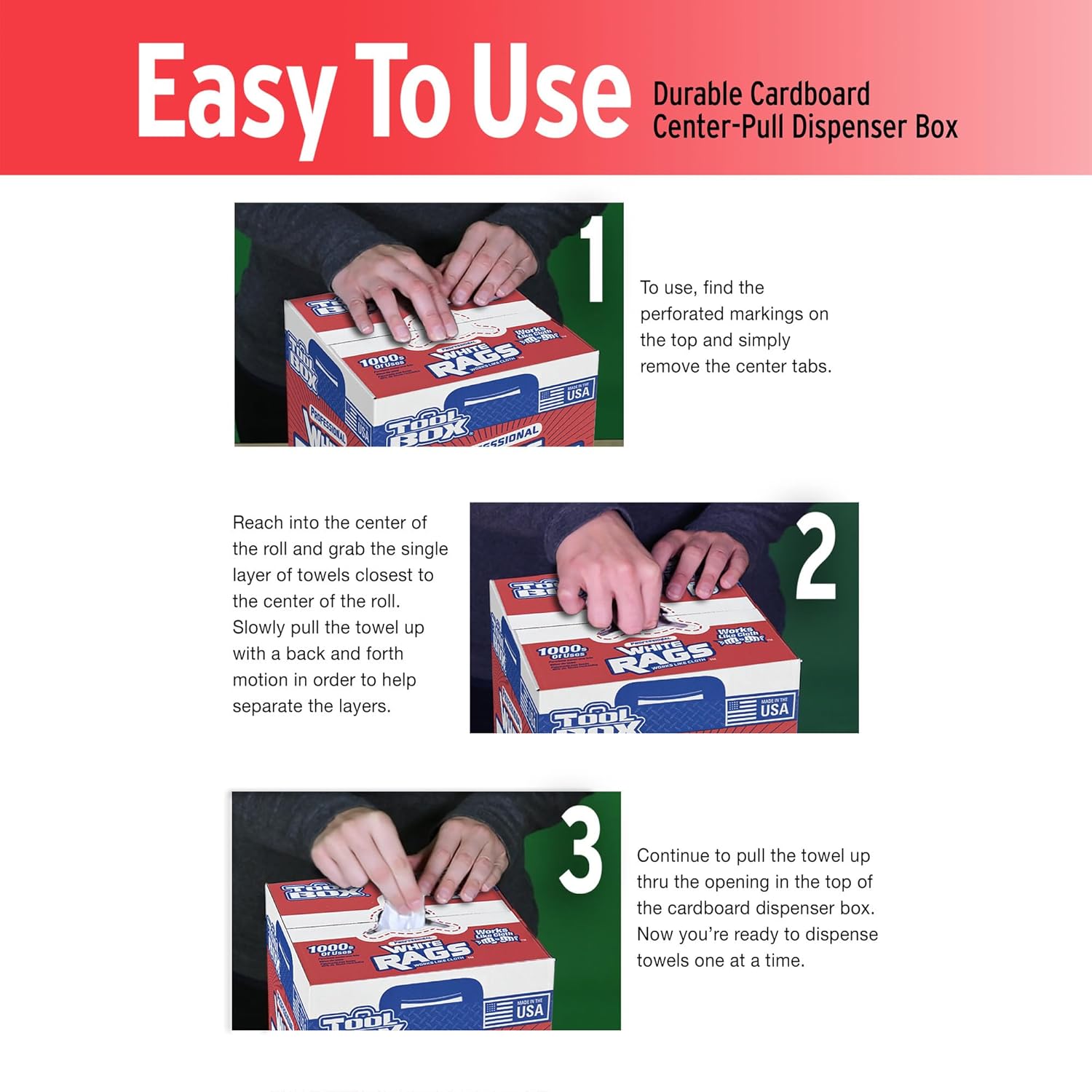 Center-Pull Convenience: Easy one-at-a-time dispensing from a portable box keeps rags clean and accessible wherever you work — shop, garage, or job site.