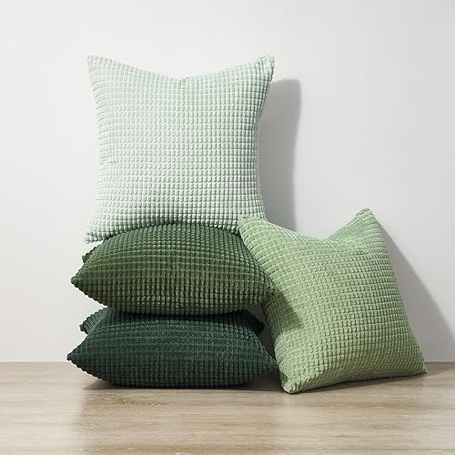 Topfinel Grey Couch Pillow Covers for Living Room 45x45 cm Set of 4,Mid Century Modern White Neutral Corduroy Corn Throw Pillows,Rustic Square Bench Chair Cushion(18 Inch/Dark Gray)(Lightgreen,16" x 16" (Pack of 4))