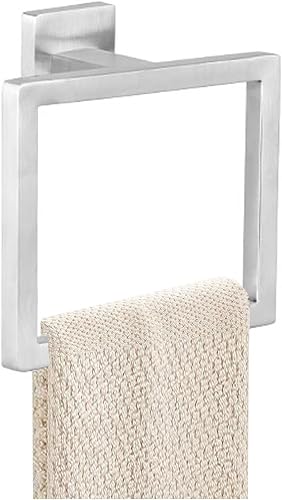 Towel Ring - Thicken SUS 304 Stainless Steel Towel Holder, Towel Racks for Bathroom, Square Modern Design Hand Towel Holder, Contemporary Hand Towel Bar - Matte Black(Brushed Nickel,1PCS)