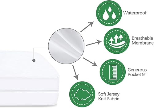 6 Sides Fully Encased: Waterproof material backing on all sides resist any leakage into the mattress, blocks perspiration, bed wetting, liquids and stains.