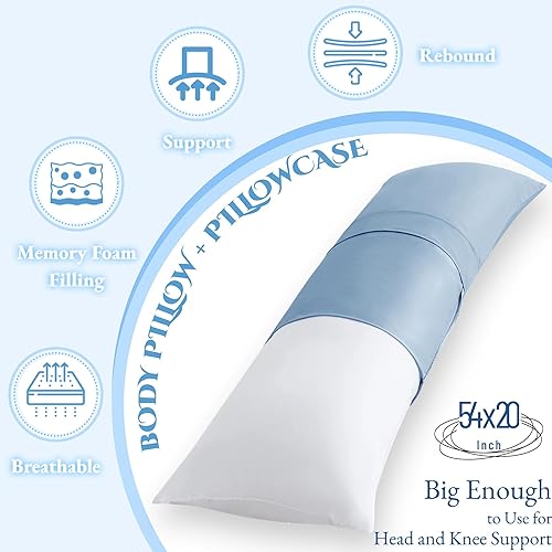 Ubauba Memory Foam Body Pillow, Full Large Body Pillows for Adults, Firm & Fluffy Long Bed Pillows for Sleeping (20x54 inch, Grey)(Blue)