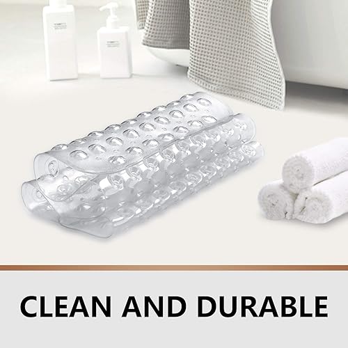 Strong Grip: Superior bathtub mat non slip features 200 big suction cups, the different suction cups adsorption stronger than other small suction cup that keep bathtub mat securely sticks well and stays on smooth and clean tub, protect your family from slipping or falling.