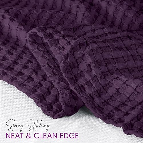 Utopia Bedding White 100% Cotton Waffle Blanket 300 GSM [Queen - 90x90 Inch] Soft Lightweight Breathable Bed Blanket for All Season(Plum,King,1)