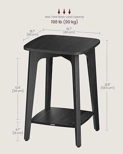 VASAGLE MAEZO Collection - Side Table, 2-Tier Small Square End Table, Nightstand with Tapered Legs, Curved Transitions, for Small Spaces, Living Room, Bedroom, Honey Brown ULET236K01(Charcoal Gray)