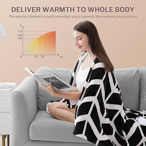 VENTIMI Electric Blanket Heated Throw, 50" x 60" Heated Blanket with 5 Heat Levels & 3 Hours Auto Off, Fast Heating Blankets with ETL & FCC Certification, Grey(Black,Throw)