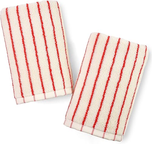 Jacquotha Black and White Striped Hand Towels for Bathroom, Vintage Kitchen Decor, Guest Use, Adults & Kids, Natural Cotton, 14” x 29”(Coral Red)