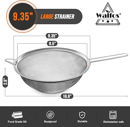 Comment on "Walfos Fine Mesh Strainers Set, Premium Stainless Steel Colanders and Sifters, with Reinforced Frame Sturdy Handle, Perfect for Sift, Strain, Drain Rinse Vegetables, Pastas Tea - 3 Sizes(9.35" Extra Large Strainer)"