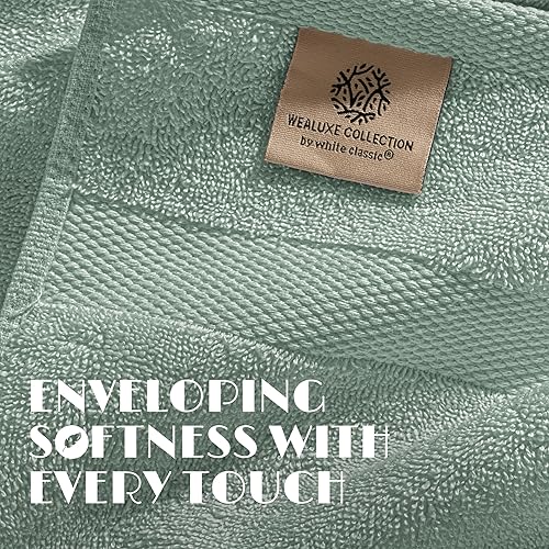 Wealuxe White Hand Towels for Bathroom [12 Pack] Cotton Hand Towel Bulk for Gym, Kitchen and Spa, 16x27 Inches Soft Highly Absorbent Quick Dry Terry Salon Towels(Mint Green,Bath Sheets- 2 Pack)