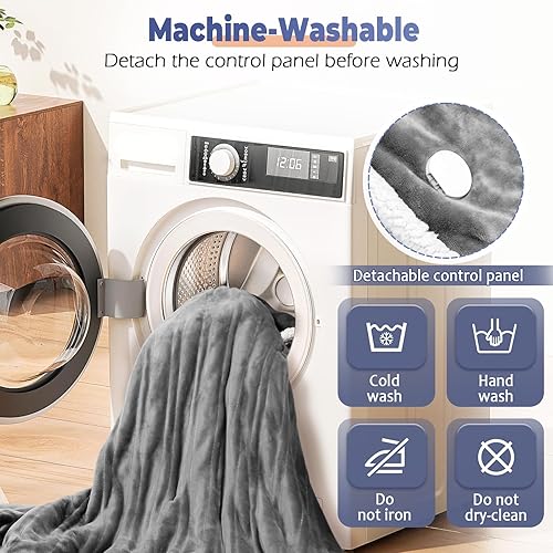 【Machine Washable Heated Blanket, Easy to Clean】Portable heated blanket is machine washable, please remove the controller before washing, please put it into the laundry bag, use cold water to wash, do not tumble dry, do not iron. Please read the user manual carefully before use.